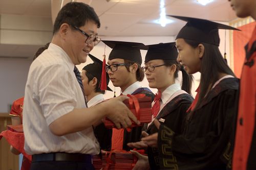 最后,李太武院长为全体毕业生一一颁发毕业证书,并与毕业生合影。伴随着嘹亮的《毕业歌》,2009届毕业生结束了自己难忘的大学生活。全体与会人员在艺术楼前合影留念。