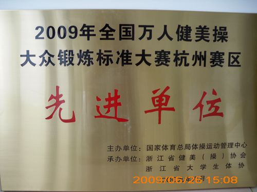 我院被评为2009年全国万人健美操大众锻炼标准杭州赛区先进单位