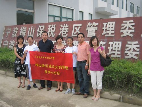 梅山保税港区管委会于2008年1月6号正式驻岛办公,负责梅山岛全部的文件,其中有管委会发给梅山岛各企业的相关文件,也有与北仑企业的合作文件,档案整理任务繁重。面对一叠叠堆积如山的档案,小分队的同学们在经过仔细讨论后,按照管委会的内部文件和外发文件及所有文件的顺序将其整齐归档,并将每份文件扫描制作成电子公文。文档管理服务小分队的辛勤工作得到了管委会工作人员的一致好评。