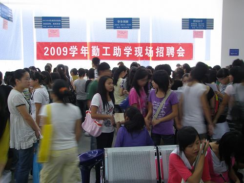 月23日中午,一场以家庭经济困难学生为主要对象的特殊招聘会在学生指导服务中心举行。在帮困助学中心的组织协调下,党校办等9个职能部门根据实际需求推出了49个勤工俭学岗位,涉及网络管理、办公室助理、实验室助理等10多个工种。共有300多位同学参加了本次招聘会,现场气氛热烈。本次招聘会完全采用人才招聘会的形式,遵循信息公开、自愿申请、贫困优先、公平竞争、择优录取的原则,实行供需见面、双向选择制。既保证勤工助学资源分配的公平、公正、公开,又让学生真实地经历了一次人才招聘会的全过程,更是让广大同学深刻地认识到竞争的激烈和提高自身综合素质的重要性,不断勉励自己,积极面对生活,将经济上的困难转化为自立自强的动力。