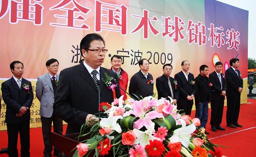 宁波市体育局局长金三叙宣布第四届全国木球锦标赛正式开幕。