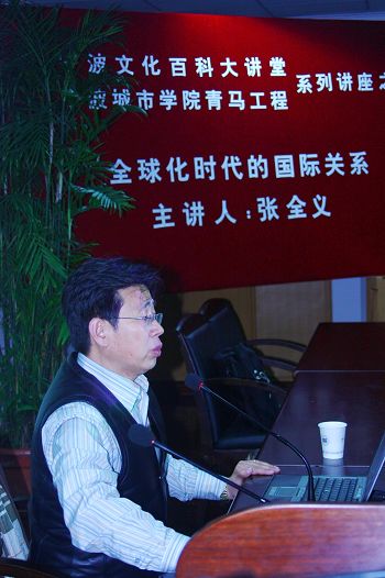 张全义博士主要围绕国际社会的形成、国际关系的制约因素,以及以中美关系为例,例举了国际关系的错综复杂。张博士在讲座中对青马学员谆谆教导,要学会哲学观、历史观、和全球通史观来审视国际关系,并告诫大家要做学好英语这门交流语言,做一名世界公民。讲座中,张博士还就青马学员提出的“中日关系走向”等问题给出了独到的见解及客观的评价,同时鼓励学生要认识社会,了解社会,学会身在校园,情系社会,多关心国家大事,做一名懂时事的请年马克思主义者。