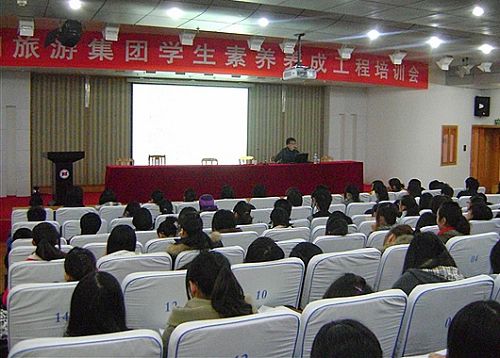 为进一步加深本院学生对职业素质养成工程的认识,强化职业意识,旅游学院整体改制为“飞翔旅游集团”后于11月28日举办了职业素质养成工程培训会,全体在校生参加了此次培训。培训会在艺术楼楼演艺大厅和学术报告厅同时举行,会议由集团副董事长,总经理叶海玲主持。