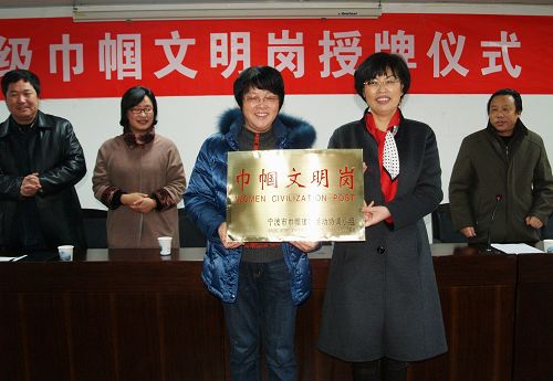 经过全体馆员的不懈努力,继被评为校级“巾帼文明岗”后,图书馆又喜获市级“巾帼文明岗”荣誉称号。3月8日上午,“巾帼文明岗”授牌仪式在图书馆四楼报告厅举行,校党委副书记程舟群到会并为图书馆授牌。