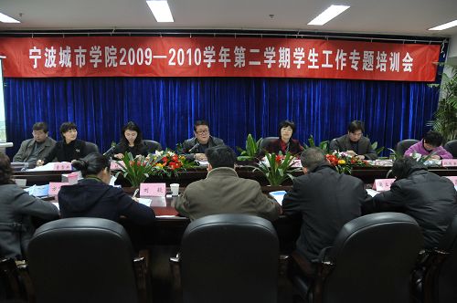 3月6日,为期一天的2009-2010学年第二学期学生工作专题培训会在行政楼三楼会议室召开。会议针对第二轮中层干部竞聘选任后,学生工作负责人作了部分调整,辅导员分工有所变化的实际情况,重点学习学生工作相关业务知识、部署本学期学生工作要点。学生处(学工部)、招生就业处、保卫处、团委全体成员,各二级学院学生工作负责人及全体辅导员参加会议。校党委书记李维维、党委副书记程舟群出席会议并作了重要讲话。会议由学生处(学工部)、招生就业处处长林辉主持。