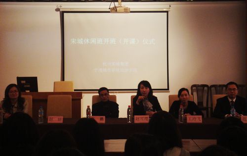 4月20日,“宋城休闲班”开班仪式在旅游学院餐饮实验室举行。宋城集团常务副总赵雪璎女士、宋城集团名下的宋城景区、杭州乐园景区和第一世界大酒店人力资源部主管人员及旅游学院相关领导参加仪式。