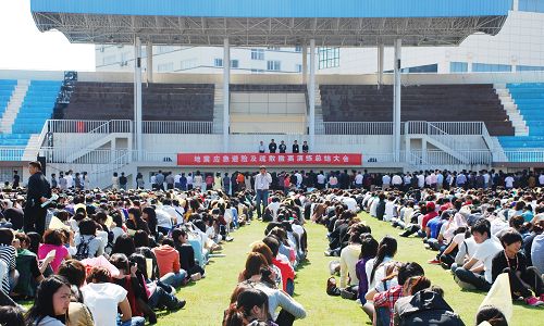 5月12日下午14:28分,当防空防灾警报鸣响之时,我院139个班级的学生和在校的教职工共5915人开展了地震等遇险应急避险及疏散撤离演练,师生们仅用了五分钟时间,全部安全地“逃”出了教室、实训室、办公室等工作场所。此次演练,由院长李太武担任总指挥,党委副书记程舟群担任副总指挥。