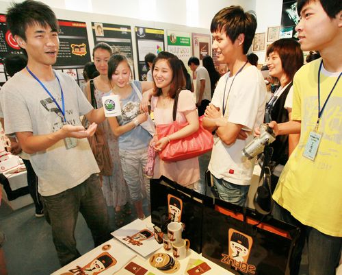 在展示厅里,室内装饰品设计、商品平面设计、艺术品设计、展示设计、室内装潢设计、动画制作等专业的毕业生作品一一亮相。看着Pan Studio学生的作品,Pan Studio导师、艺术学院执行院长潘沁不禁感慨道,“每一件作品凝聚了同学们的智慧与汗水,是毕业生们对母校的倾心栽培、对导师们辛勤教育的最好回报,也是毕业之际送给母校最好的礼物”。作品展上,前来参观的嘉宾们在细细品味作品时,不禁发出啧啧的赞叹声。财会金融学院的冰馨同学说:“看着这些精致、美观的作品,我都想买几件回去。” 同时,在二楼的招聘会现场,同学们与在场的各单位的招聘人员积极沟通。宝典文化公司的负责人顾玉兰总经理表示,“看了学生们的毕业作品让我们能够很直观的了解毕业生在专业业务上的实际水平和能力,缩短了认识毕业生的距离。” 随着“工作室”制人才培养模式的不断深入推进,艺术学院毕业生作品展已走过了4个春秋,汇集了毕业生的设计创意理念。据悉,为了能让更多的同学前来参观学习,此次的展示会将持续一周。