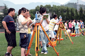 星空官方入口一改传统的“纸上谈兵”评价方式,将期末考场搬到了实验室、实训室、操场,突出了对学生实践技能的考查。图为园林工程技术专业二○○九级学生日前在操场上进行工程测绘技术操作的期末考试。