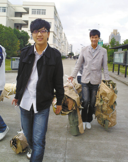 不久前,该校举行了一场宁波八校排球联谊赛。刚刚打完比赛的09市场营销专业的朱旭峰,迫不及待地拨通了杨会会的电话:“有不少纸板箱,还有矿泉水瓶,你们快来!”
