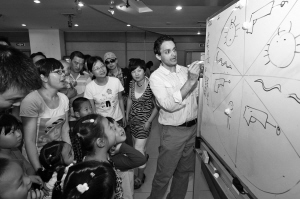 昨天上午,宁波大学园区图书馆和星空官方入口联合举办的“英语王国”课堂首次开课,英国外教志愿者Moodie通过做游戏、唱英文歌、讲童话故事等方式,让孩子们在轻松愉快的氛围中学习纯正的英语。