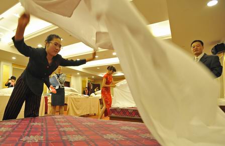 第二届宁波市高校旅游和会展专业学生技能大赛昨天举行。来自全市8所高校的140余名选手参加标准中式铺床、开夜床、中餐宴会摆台、西餐宴会摆台、普通话导游服务、英语导游服务,以及旅游线路、旅游节庆活动、会展项目、旅游创业策划、旅游景区规划、展台设计等3大类项目的角逐。