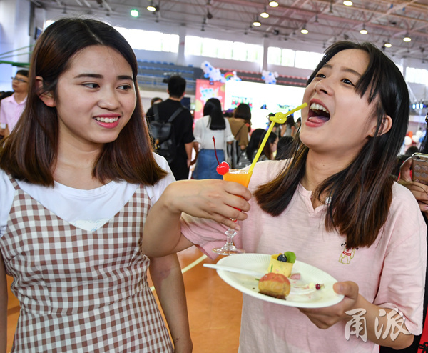 (现场各式饮品、点心大受毕业生欢迎。)