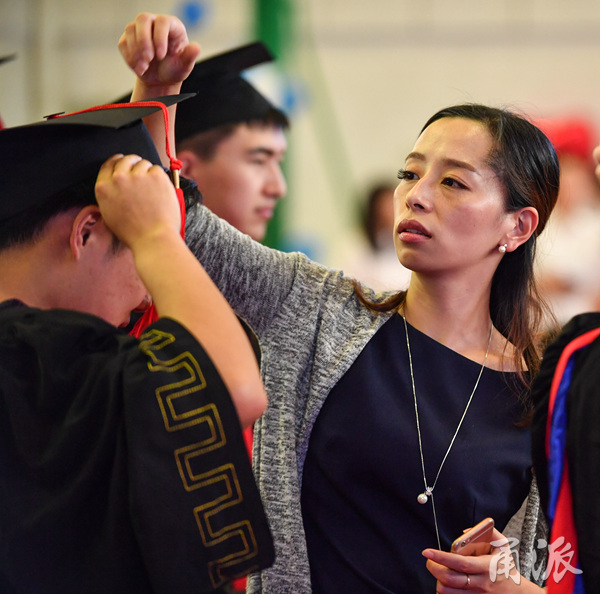 (准备上台接受导师拨穗仪式的毕业生。)