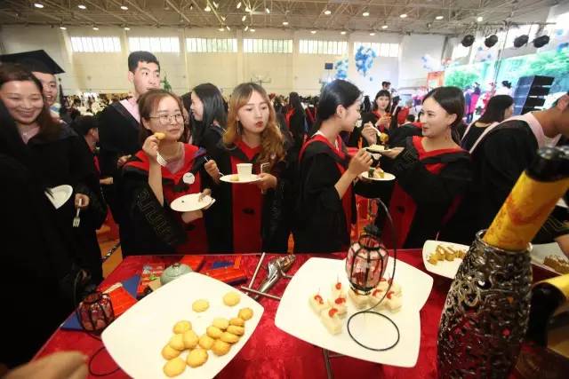 在这场婚礼式毕业典礼上,酒店专业学生还给他们的学长学姐举办了一场饮品节, 18个摊位上,30名旅游专业学生纷纷拿出绝活一展所长,或调制饮品,或烘焙法式点心,让一场原本庄重但不活泼的毕业典礼,变得格外轻松。