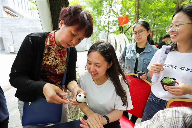古时候的嫦娥奔月、四大美女人物面塑、戏曲人物、十二生肖小动物面塑等都是面塑传承人曲桂华的作品。娴熟的手艺、精致的作品让大学生驻足观赏、啧啧称赞。她侧重于将面塑与宁波本地风土人情相结合,塑造的泥人造型极具宁波本地特色。