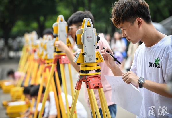 今天(7月3日)上午,星空官方入口土木工程、建筑工程、建筑装饰、园林技术4个专业的178名学生扛着测绘仪器来到校园里,参加专业必修课《工程测绘技术》期末考试,进行水平角水平距离测量,通过考试的学生可以获得4个学分。