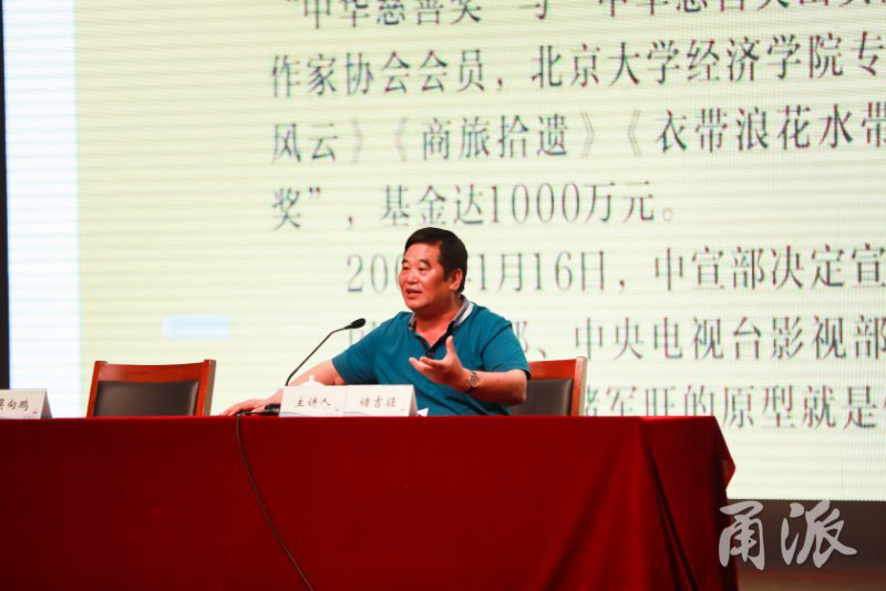讲座中,储吉旺以《爱国与经商》为主题,向在场观众抛出“什么是幸福”的话题,结合其自身阅历和人生经验,列举了鲜活生动的案例,向大家诠释了“幸福,就是在不断克服困难中得到满足,从而不断获得幸福感!”