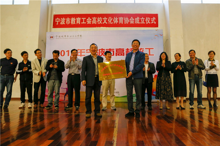 另外,全市教职工气排球擂台赛颁奖典礼后,还举行了宁波市教育工会高校文化体育协会成立仪式。仪式中,宁波市教育工会主席马小平同志为协会进行了授牌,协会秘书长杨忠辉宣布了宁波市教育工会高校文化体育协会组成人员。