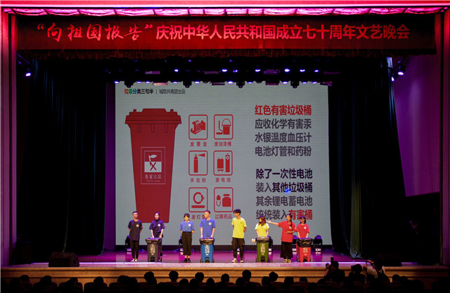 “牢记使命·城院行”篇章中,青阳艺术团声乐队阿卡贝拉《青春修炼手册》用青春诠释幸福都是奋斗出来的;“我们都在努力奔跑,我们都是追梦人!”街舞社、动漫社、跆拳道社带来的集体社团秀《追梦人》,带领现场观众一睹社团风采;由青阳艺术团主持人协会、“最美节小二”志愿服务队带来的三句半表演用多元化的演绎和现场垃圾分类实操呼吁城院青年做到《垃圾分类我先行》。辅导员小组唱《我最闪亮》展现了他们有趣的灵魂。晚会在一首《少年中国心》中圆满落幕,青阳艺术团合唱团用歌声生动献礼祖国70华诞,全体观众被优美的旋律所陶醉,被艺术的激情所感染,被高昂的热情所震撼。