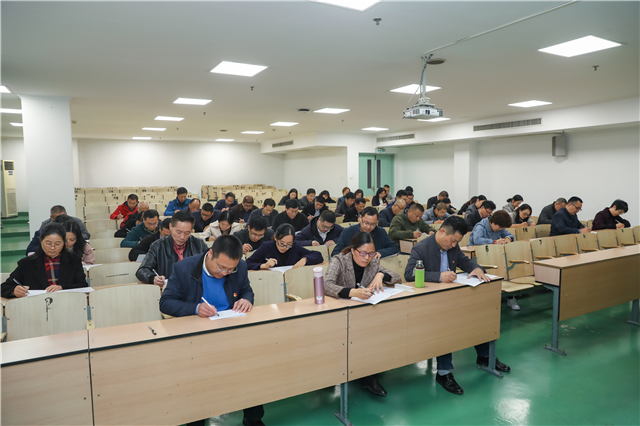 此次测试采取闭卷形式,十个考场同步开考,由学校主题教育督导组相关成员和各党总(直)支部书记监考。当晚,中层干部也参加了统一测试。测试内容涵盖《中国共产党章程》《习近平关于“不忘初心、牢记使命”重要论述选编》《习近平关于“不忘初心、牢记使命”论述摘编》《习近平新时代中国特色社会主义思想纲要》和党的十九届四中全会精神等方面。