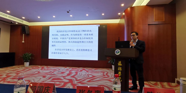 11月24日下午,民盟南高教园区联盟“不忘合作初心,继续携手前进”主题教育学习会在我校举行,民盟市委会专职副主委郭强应邀出席并讲话,党委副书记刘静萍、党委委员、统战部部长朱海岳、民盟市委会副主委闫国庆、民盟市委会秘书长陈化贤及南联盟各支部主委和四十余位盟员参加了会议。学习会由民盟宁波城市职院支部主委潘沁主持。