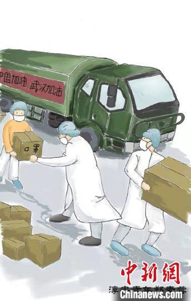 “00后”郑素蓉家住杭州市淳安县屏门乡,近一周来,画防疫漫画成为她的日常。从构思到落笔再到上色,一幅幅漫画中,有对防护知识宣传,对医护战士的讴歌,也有对抗疫场景的记录。