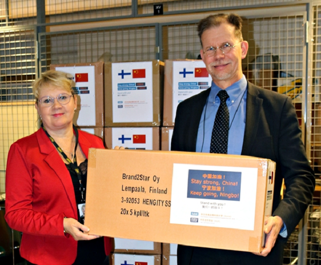 自武汉爆发新冠肺炎疫情以来,与宁波开展紧密合作的中芬合作平台和英中文化科技交流协会在各自国家积极为宁波寻找防护用品,共筹集到近4000个欧盟FFP2/FFP3标准防护口罩,支援宁波抗疫工作。