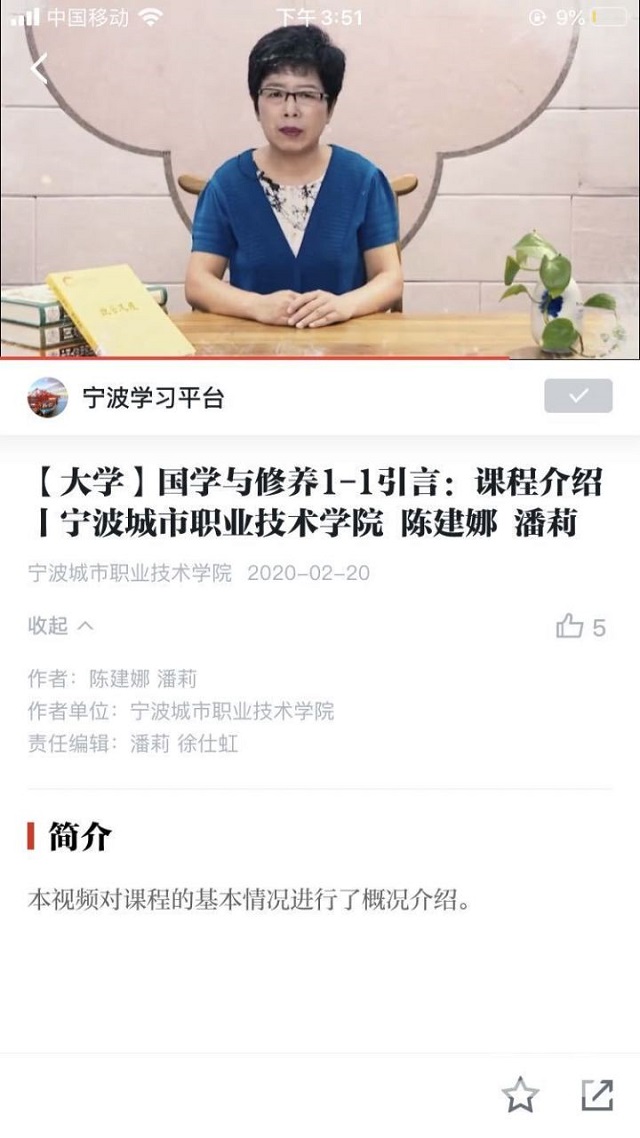 这是该校继《插花艺术》课程登录“学习强国”平台“学习慕课”栏目以来的又一突破,成为宁波高校在“学习强国”平台上线课程数量最多的高校。