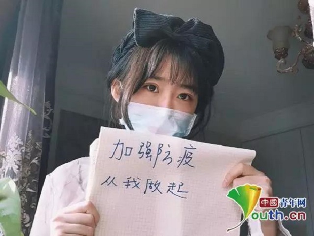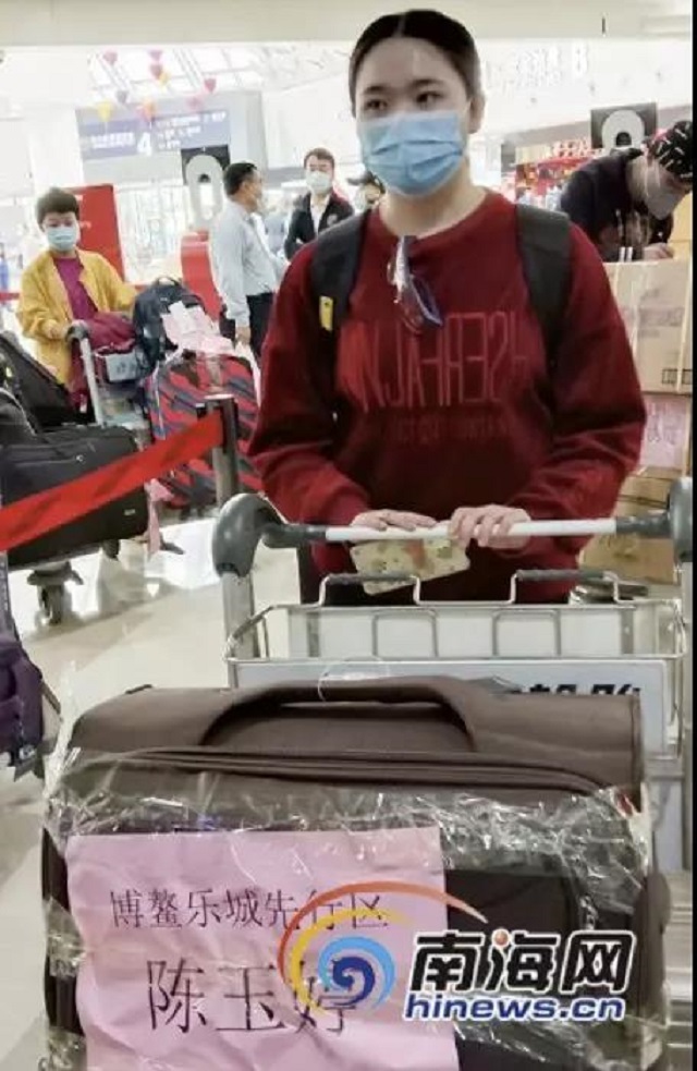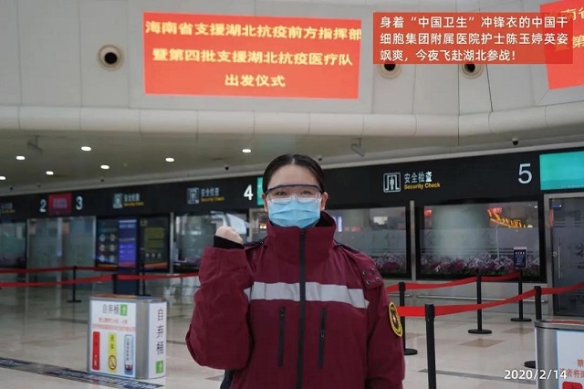 陈玉婷登机前为自己加油。中国干细胞集团附属医院供图