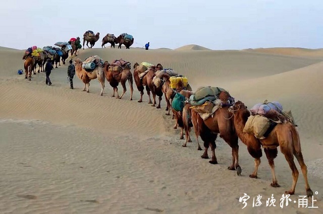 那是2018年的秋季,潘沁应新疆维吾尔自治区和田区文物局邀请,和科考队20余名成员一起,随驼队徙步两百多公里,从和田出发经于田沿着克里雅河流域进入塔克拉玛干沙漠,用脚步丈量并成功穿越塔克拉玛干沙漠。