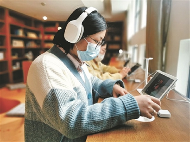“我自己是喜马拉雅的会员,一直保持着听书的习惯,给自己充电放松,有声图书馆出现在学校让我眼前一亮。我会建议学生返校后多来体验,在图书馆里听书是种享受。”一名辅导员在体验了休闲体验区后说。