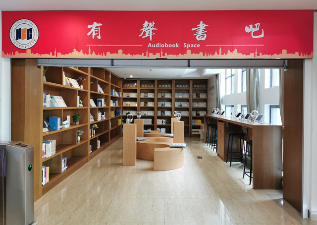 该校书吧内设置了耳机森林、有声阅读墙、大咖书单以及休闲体验区四大区域。每一子板块的有声资源每季度实时更新,全年将为读者提供8000余个音频资源。