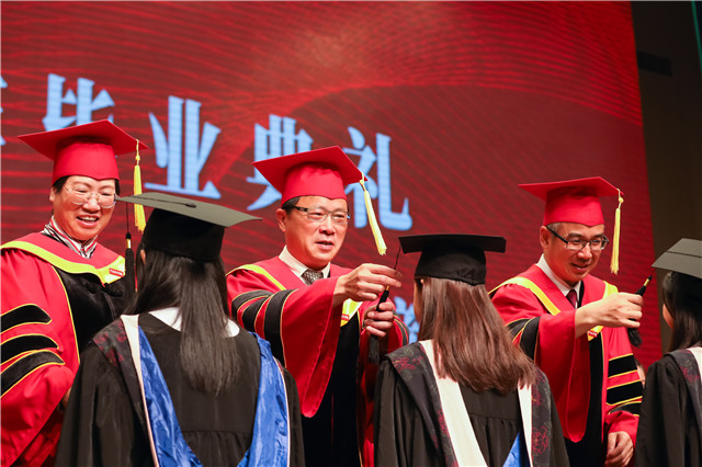 校领导为毕业生拨穗正冠、颁发证书