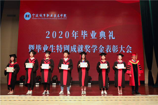 典礼上,校领导为毕业生代表拨穗正冠、颁发证书,副院长潘菊素宣读了2020届省级、校级优秀毕业生名单、毕业生特别成就奖学金获得者名单,党委书记周国明、纪委书记徐建春、副院长严新乔分别为获奖代表颁发证书。