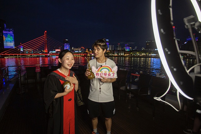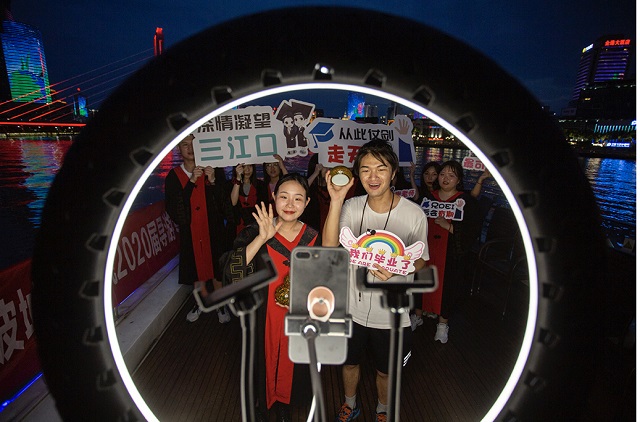 据统计,短短1小时左右的直播吸引了几千人观看。据学校负责人介绍,受疫情影响,部分同学没有返校,在这个离别之际,师生们一致同意,在游船上举行毕业活动,并将活动直播出去,让没来的同学一起参与,也通过这种方式宣传宁波,为宁波打call,为宁波带“景”。