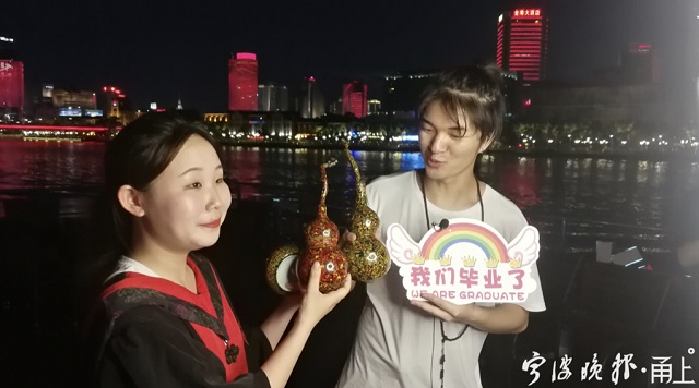 学院党总支书记朱建国告诉记者,在游船上的这帮大学生,是宁城职院导游专业的20届毕业生,他们刚刚拿到了毕业证书,一部分班级同学因为疫情没有回甬返校,留在宁波的同学便想到了在游船上举行这样的一场毕业活动。