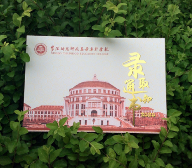 宁波幼儿师范高等专科学校的录取通知书,颜色以中国红为主,哑金色为辅,向考生传递祝贺、欢迎的愉悦信息。