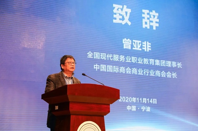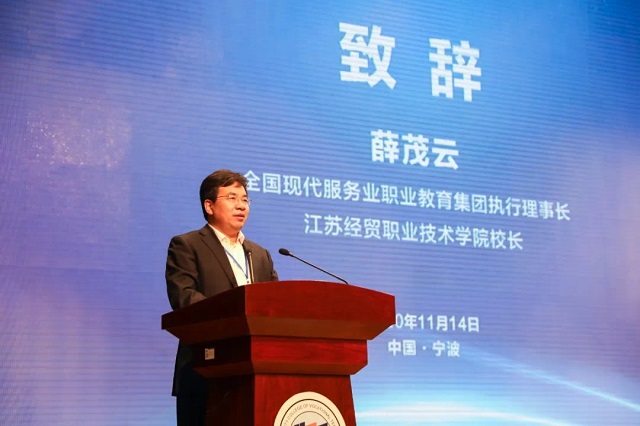 11月14日,全国现代服务业职业教育集团2020年年会暨职业教育高水平发展论坛在我校举行,全国现代服务业职教集团理事长、中国国际商会商业行业商会会长曾亚非、全国现代服务业职教集团执行理事长、江苏经贸职业技术学院校长薛茂云、宁波市教育局高教处处长王勇、吉林电子信息职业技术学院党委书记李雁冰、广东科贸职业学院校长李志伟及来自行业、企业、职业院校等全国现代服务业职教集团和宁波现代服务业职教集团成员单位的200余名代表参加会议。会上,我校与行业企业共建工业互联网产业学院、视觉东方 贝发文创学院和汇绿园林“双师型”教师培养培训基地。