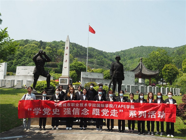 不忘来路 阔步向前 4月29日,国际学院/TAFE学院第三党支部赴浙东抗战老兵纪念园开展以“学党史、强信念、跟党走”为主题的党日活动,从而增强党员、入党积极分子学党史的感官体验,瞻仰革命史迹,接受革命传统教育。在纪念园,同学们在“浩气长存碧血丹心”纪念碑前举行了祭奠仪式,默哀致敬、深切缅怀革命先烈。仪式后,同学们重温了入党宣誓词,庄严的宣誓词句句深入人心,表达了继承发扬老一辈革命家优良传统的决心。