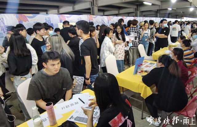 这次招聘会,大部分大学生是“人生第一次”参与这样的求职,面对同样青春的企业招工人员,学生们感受到了鄞州企业的青春与活力,原本的紧张和迷茫变为了共同奋斗的渴望。