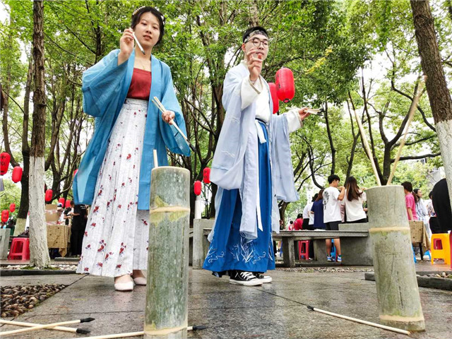 今天(2日)下午,星空官方入口“品味·传承”2021中国传统文化游园会场面火爆。近千名大学生手持“通关文牒”,兴趣盎然地参加汉服体验、剪纸、插花、蹴鞠、书法、舞龙、茶艺等20余个中国传统文化项目的体验,感受中华优秀传统文化的魅力。