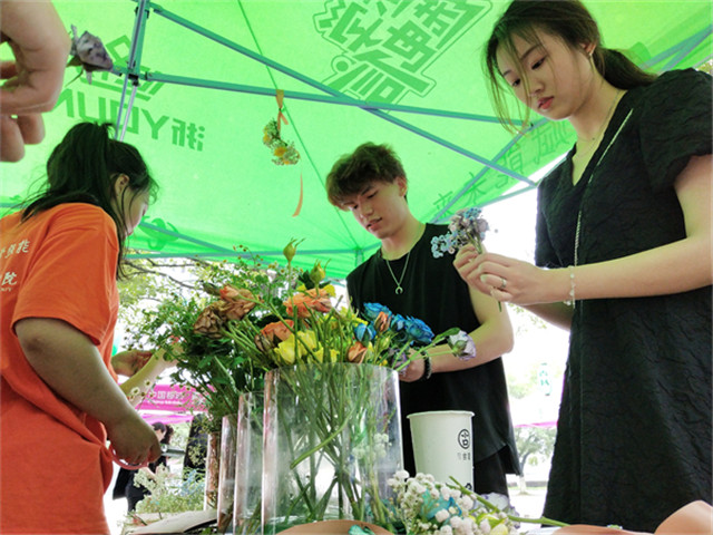游园会现场还邀请到了宁波市非遗香包代表性传承人周管芬老师和鄞州区非遗剪纸代表性传承人任毕君老师,手把手教大学生香包绣制、传统剪纸手艺,吸引了很多大学生现场体验。