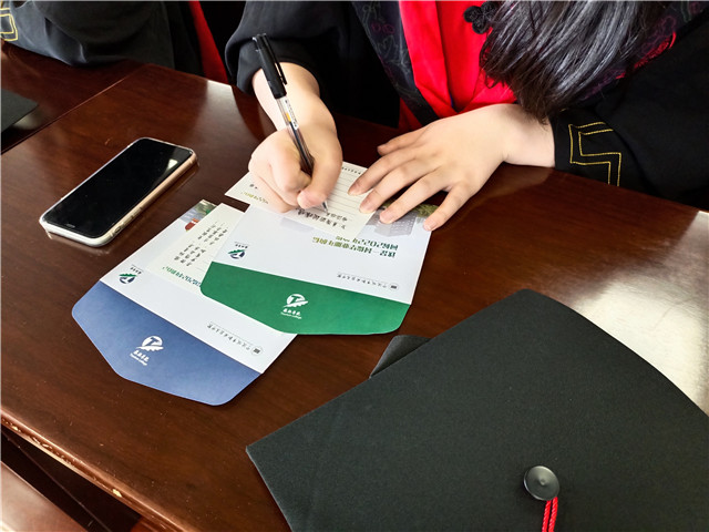 “我在信中,一方面是对未来的自己发出了提问,另一方面是对自己未来的设想。很想知道那时候的我是不是正在既定轨道上前行,自己的状态如何?”21届酒店管理专业的章精敏同学如是说。