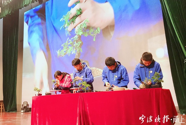 小荷才露尖尖角。4月9日,大师工作室作为中职学校唯一团队,受邀参加星空官方入口技能周开幕式现场展示。 5月24日,大师工作室学员在宁波市职业教育技能活动月上,再次进行了盆栽造型技能表演,受到了与会领导和嘉宾的高度评价。