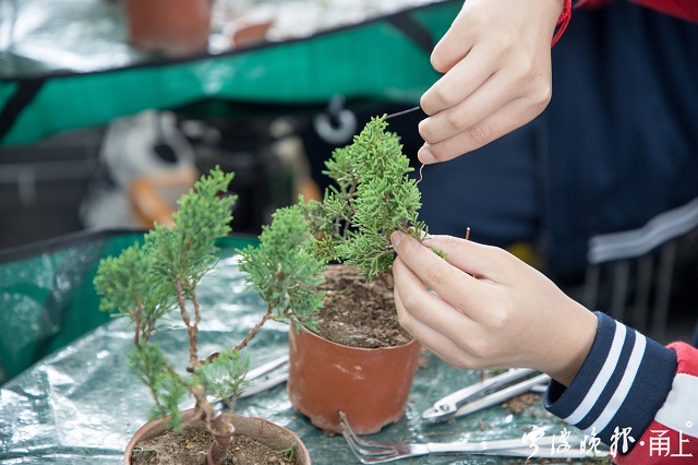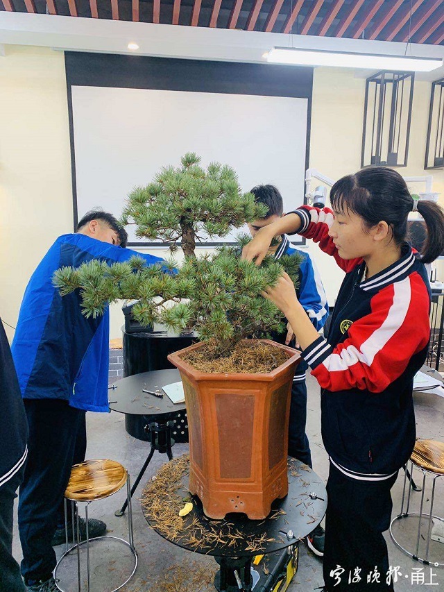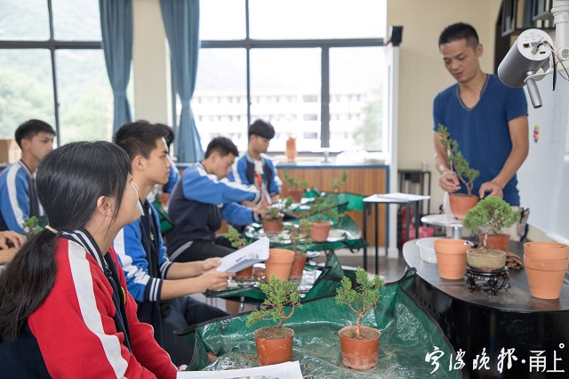 把世界顶级盆栽大师请进学校,学生在课堂上就能和名匠面对面,这已经是宁波市四明职业高级中学的常态。6月22日,记者在该校课堂上看到,学生们手拿专业修剪工具,正在进行小品盆栽的学习实训。