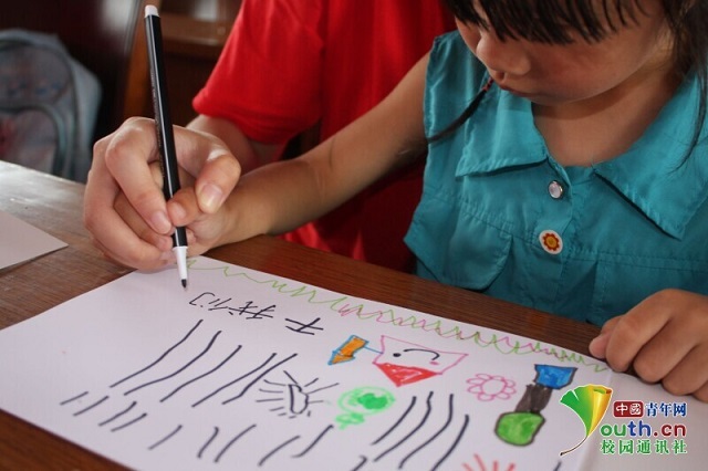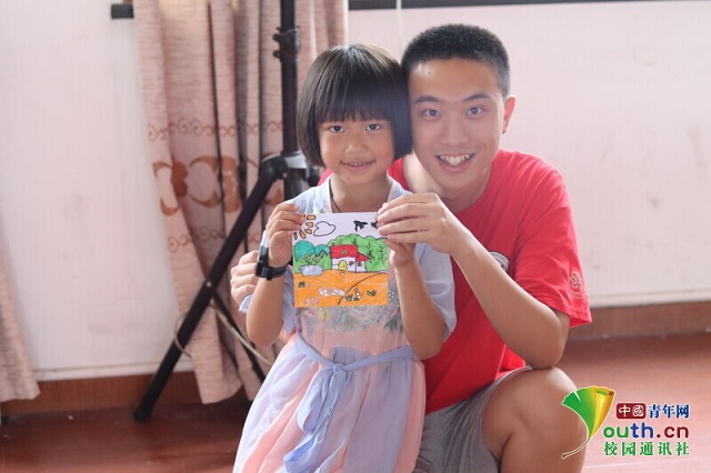 图为团队成员教小朋友绘画。中国青年网通讯员陈贝贝提供。