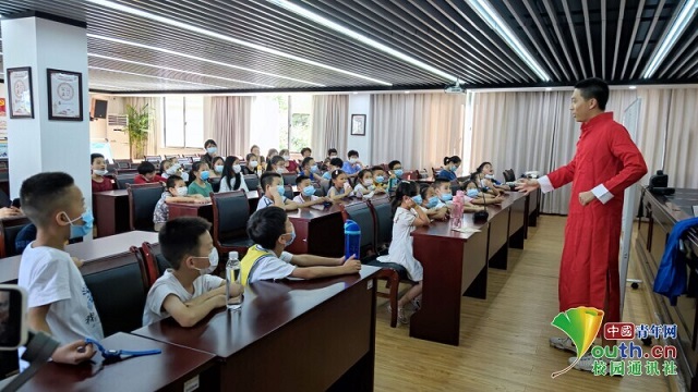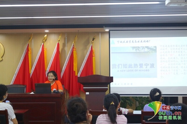 图为团队成员深入浅出地讲解宁波文化。中国青年网通讯员陈贝贝提供。