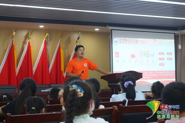 图为团队成员讲解求生安全小知识。中国青年网通讯员陈贝贝提供。