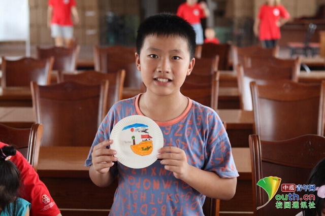 图为小朋友展示绘画成果“后竺之美”。中国青年网通讯员陈贝贝提供。